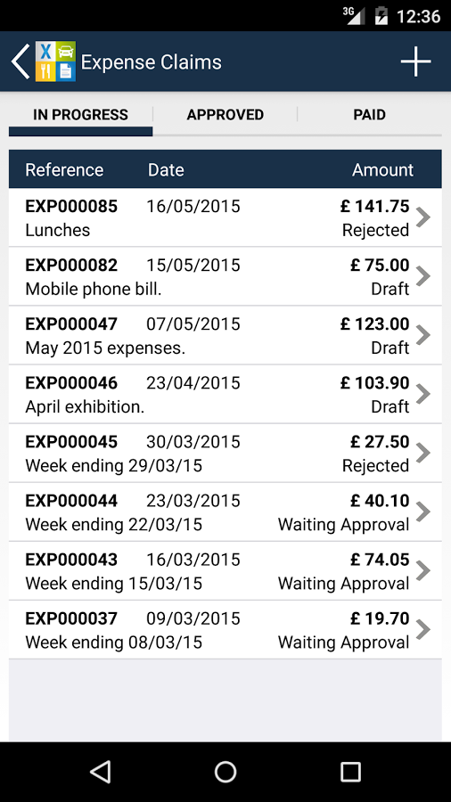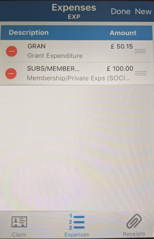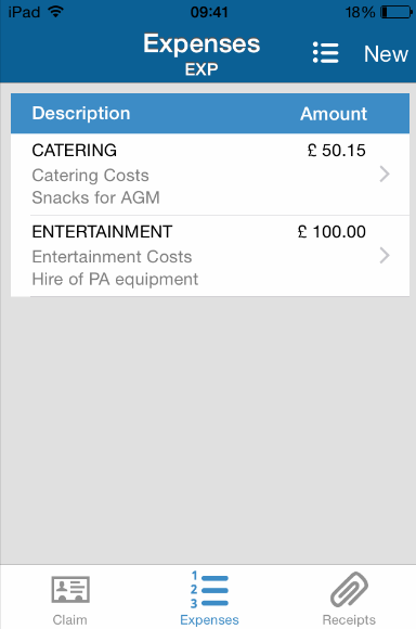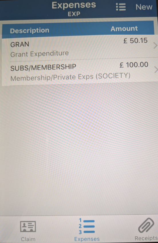 4. Without clicking the tick (Android) or ‘Save’ (iOS), click on the ‘Expenses’ button. Then as before click on the ‘+’ or ‘New’ button in the top right.