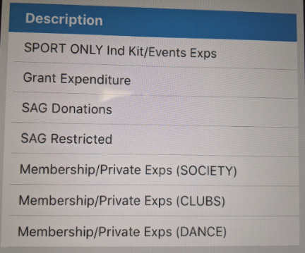 - Private – contains all money generated by the group themselves (Sponsorships/Membership fees etc.)