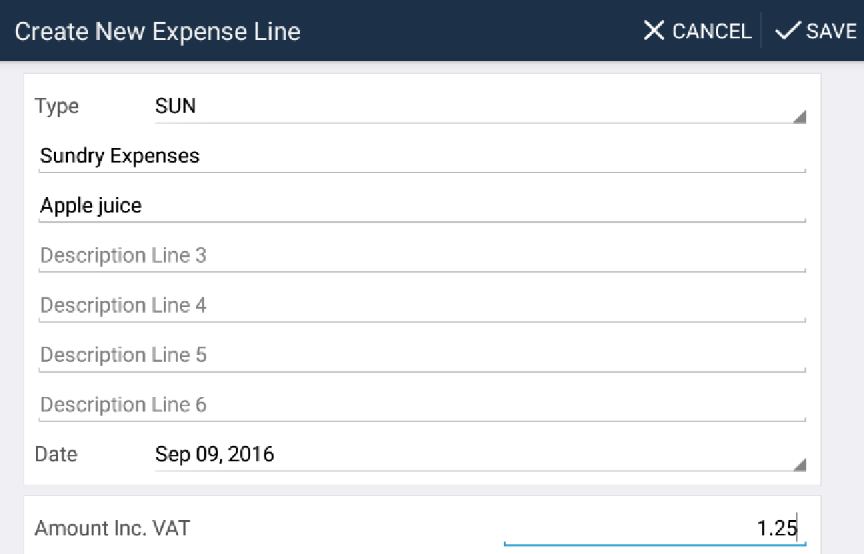 The screen below shows how you can add new expenses on Android devices.