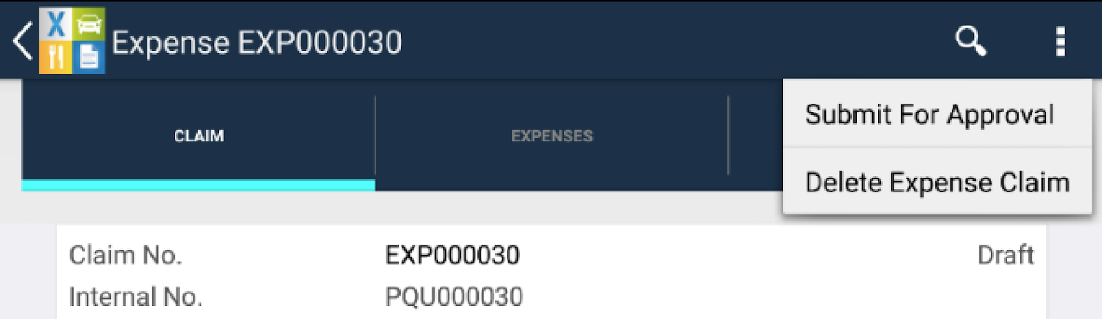 This will bring you back to the Expense Claims menu.