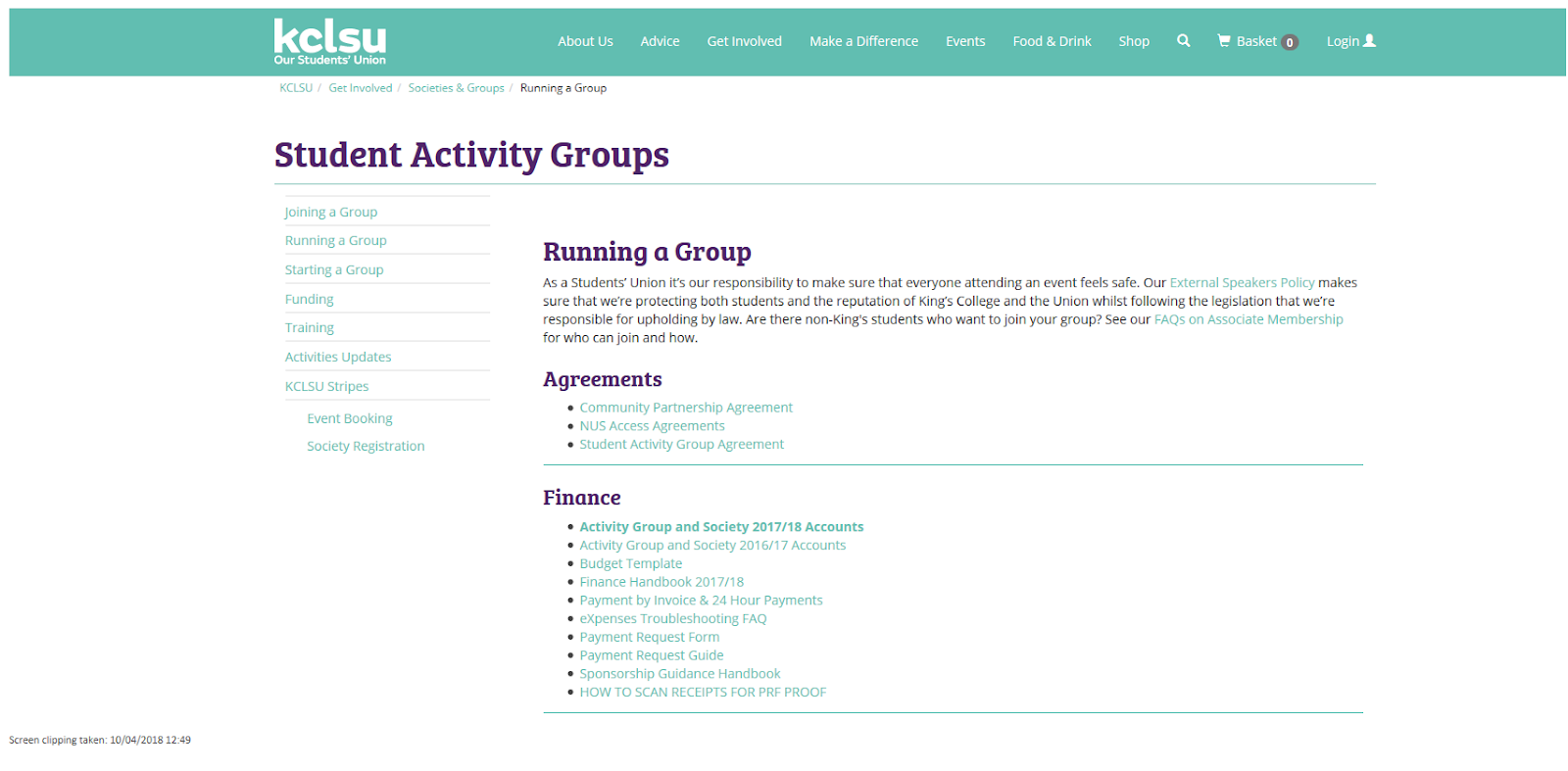 - Check that you have admin rights as the President or Treasurer of the relevant group (see page x). If not, please email activities@kclsu.org or sport@kclsu.org for clubs.